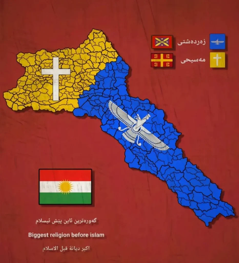 ڕێژەی ئاینەکان بەپێی ناوچەکان پێش هاتنی ئاینی ئیسلام