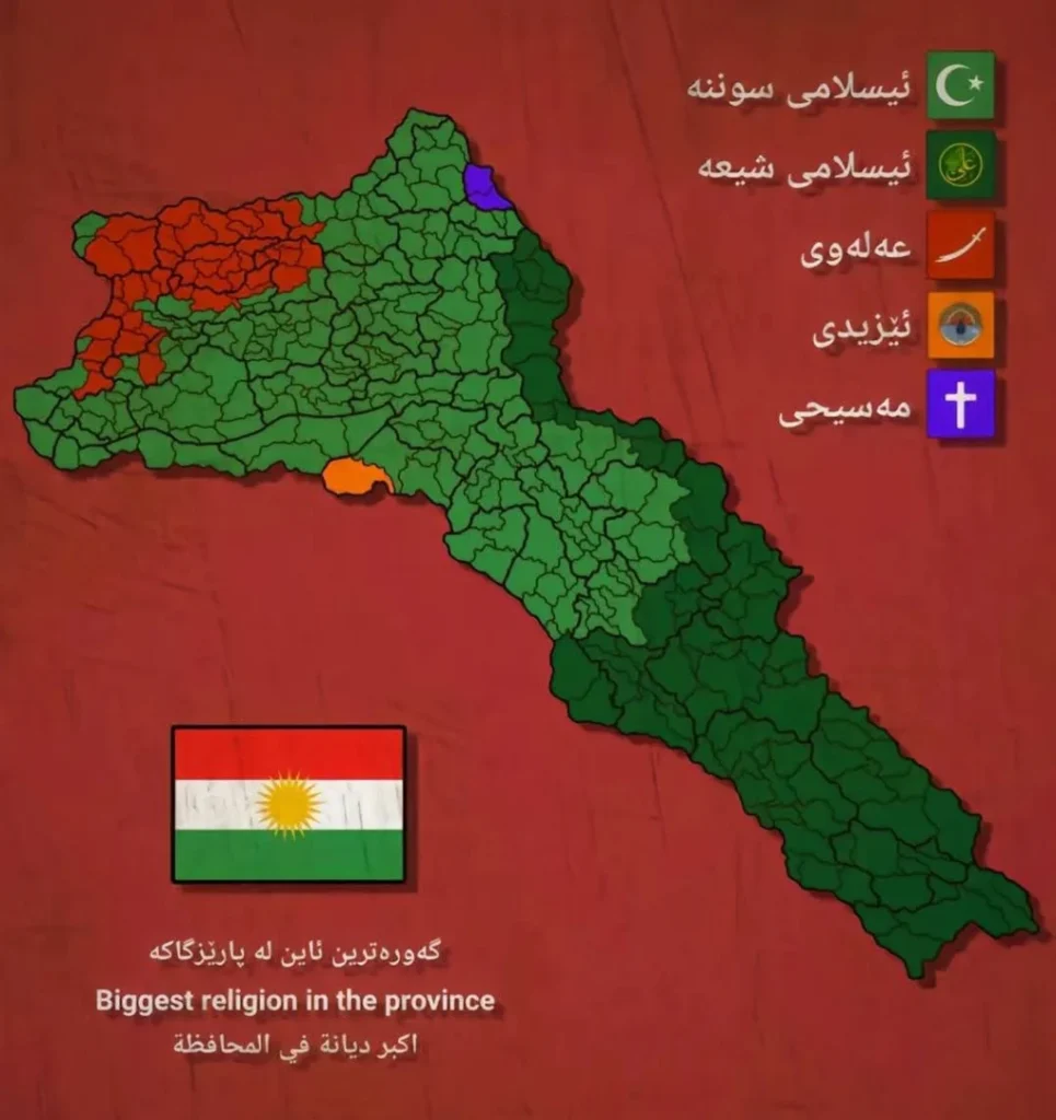 ڕێژەی ئاینەکان لە ناوچەکانی کوردستان