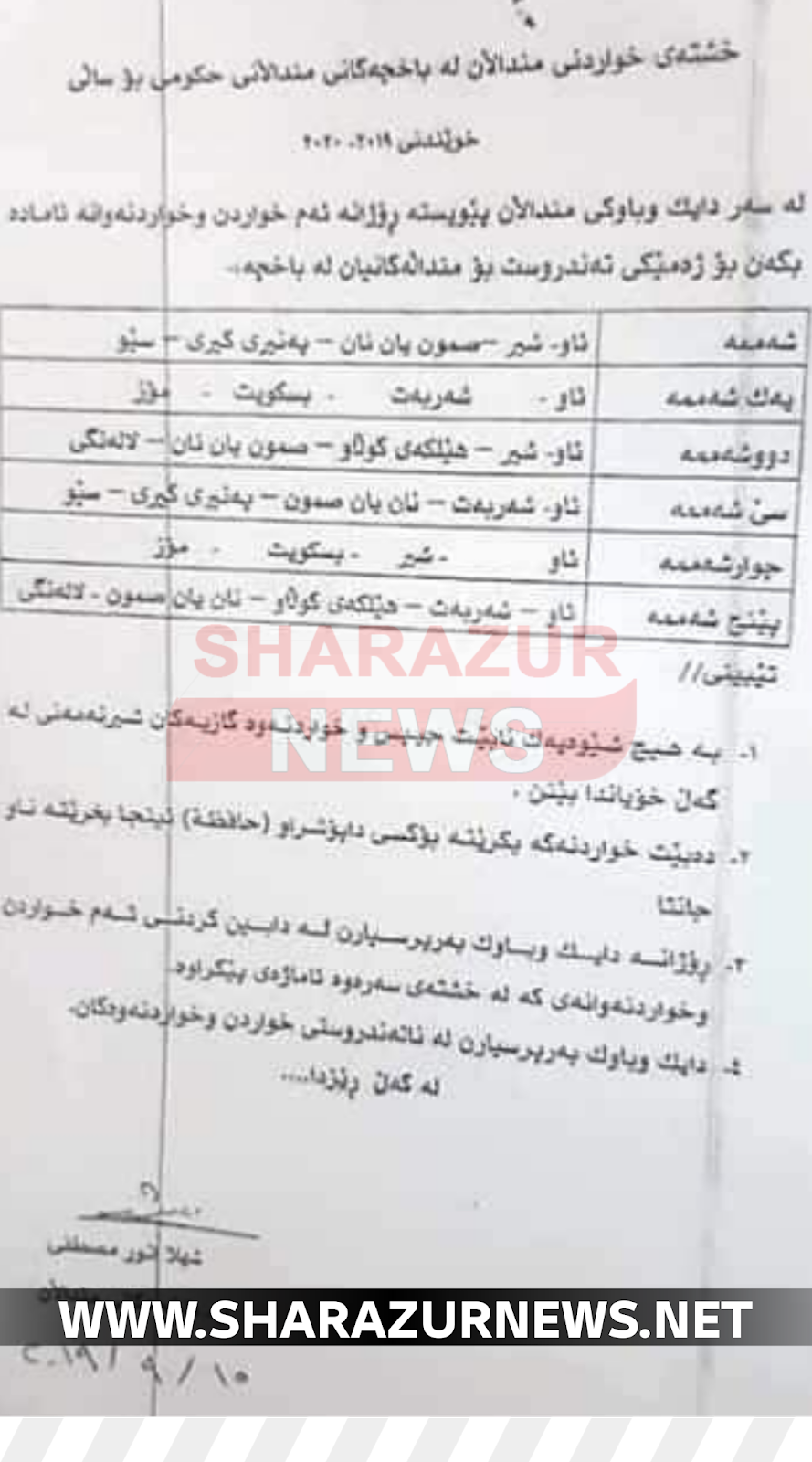 بەشێک لەو دایک و باوکانەی منداڵەکانیان لە باخچەی منداڵانی حوکمی داناوە لە قەزای شارەزوور ناڕازین لە بڕیارێکی وەزارەتی پەروەردە سەبارەت بە خشتەی خواردنی منداڵەکانیان بۆ ساڵی ٢٠١٩-٢٠٢٠