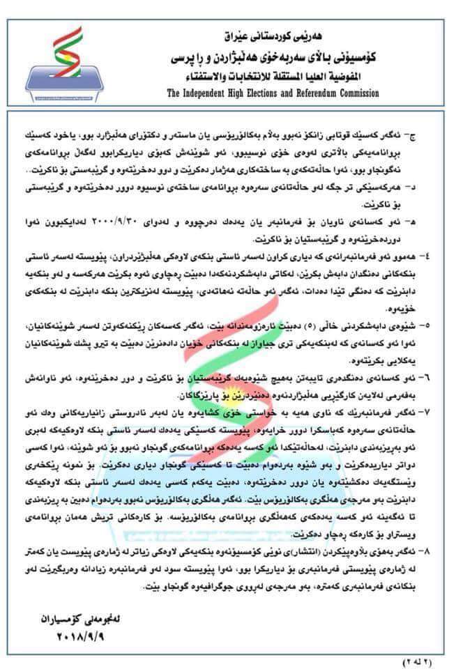 ئاگاداری تایبەت بە فەرمانبەرانی گرێبەستی کۆمسیۆنی ھەڵبژاردن و ڕاپرسی ھەرێم بۆ (٢٠١٨/٩/٣٠).